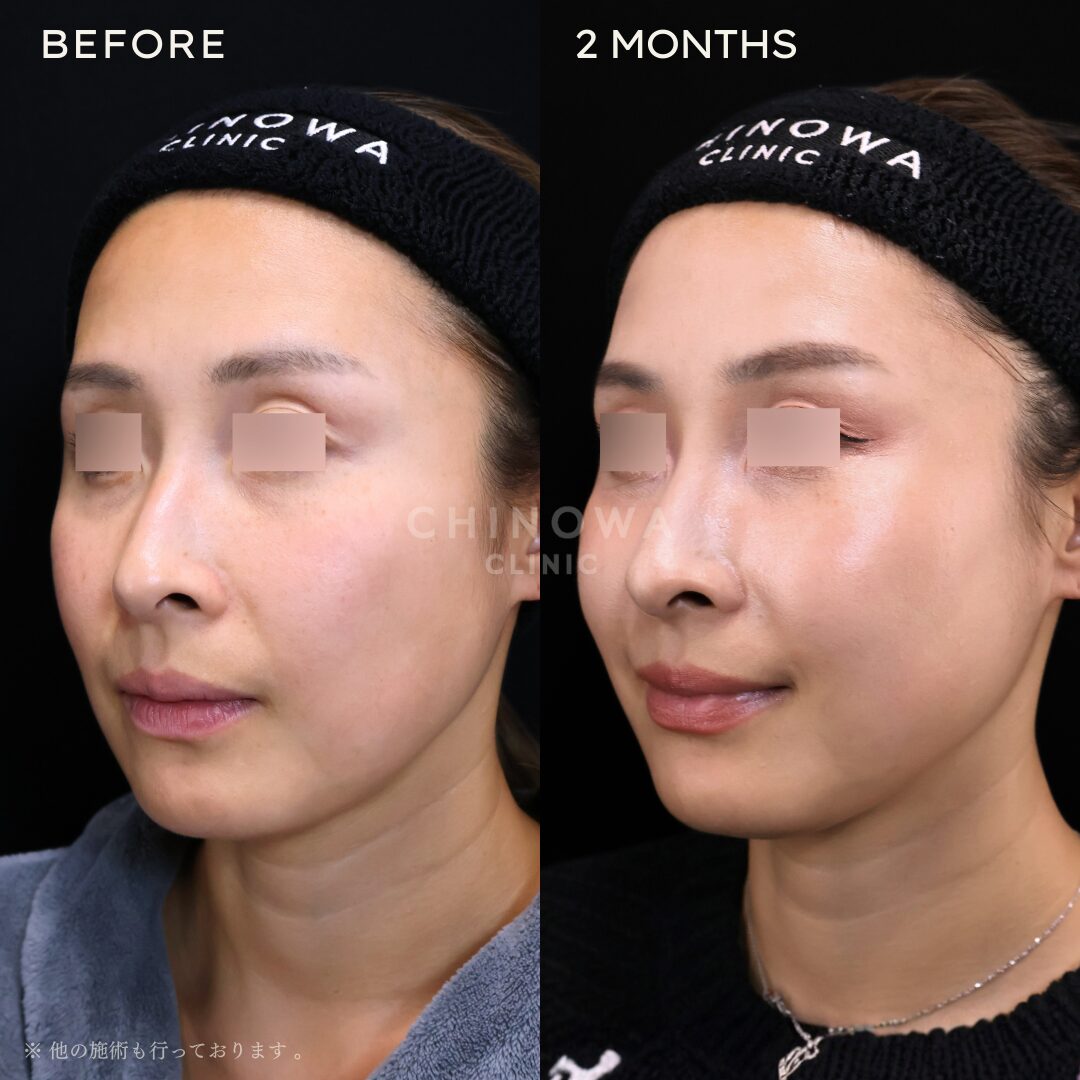| ダウンタイム | 腫れのピークが2、3日目、その後は7~10日かけて徐々に引いていく。内出血は2~3週間ほど出る可能性あり |