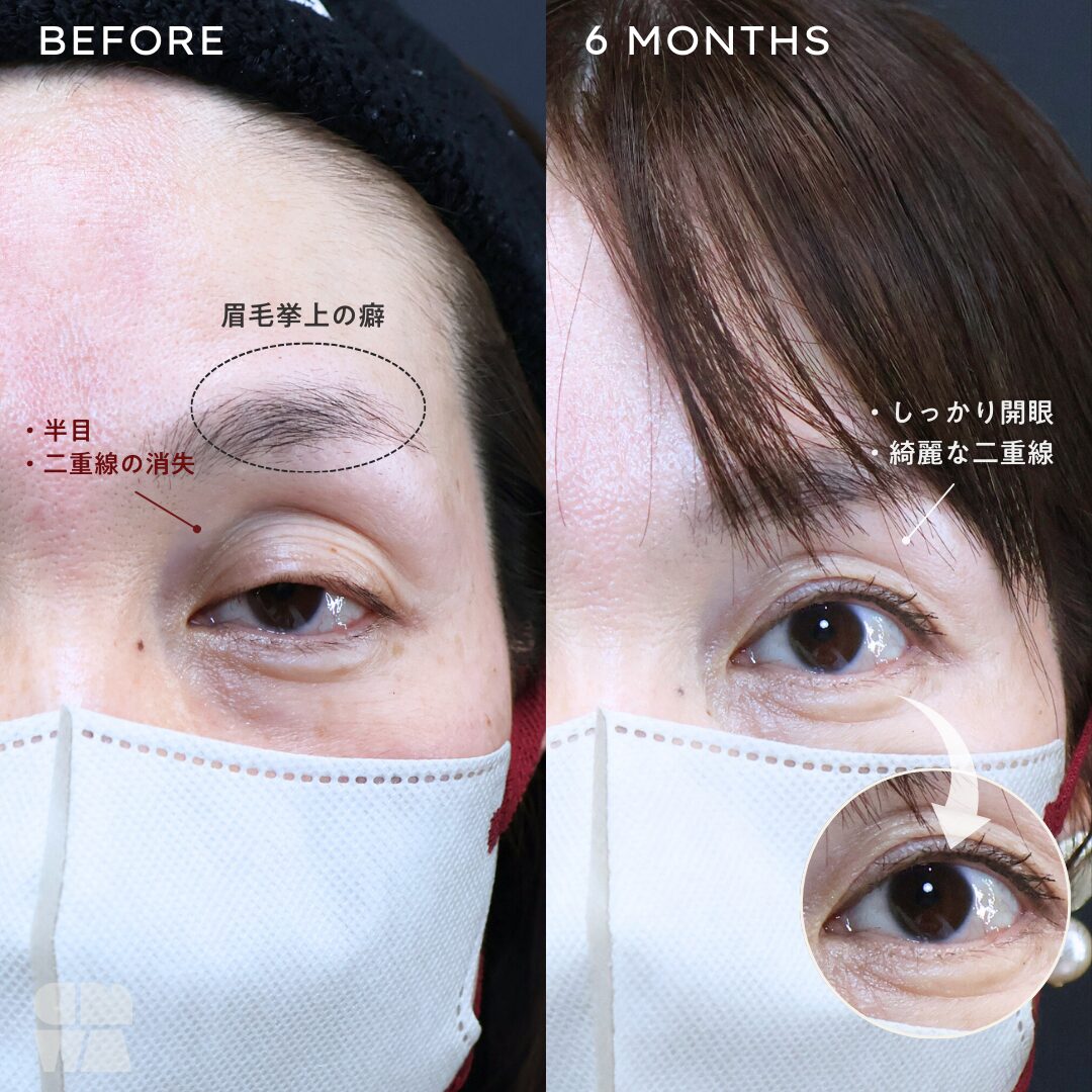 眼瞼下垂(切開法)+二重全切開 No.00001 眼瞼下垂(切開法) 全切開二重施術内容 | ・眼瞼下垂(切開法) ・二重全切開 ・たるみとり併用 |