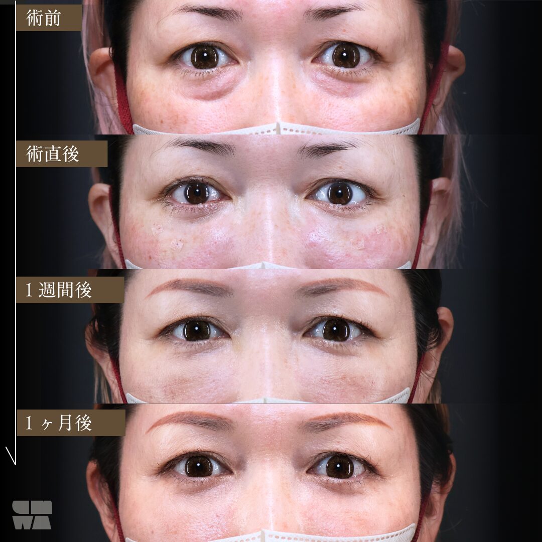 裏ハムラ法+脂肪注入(目の下~ゴルゴ) No.000050 目の下のクマ・たるみ施術内容 | ・裏ハムラ法 ・コンデンスリッチファット注入 ・ナノファット注入(目の下~ゴルゴ) |