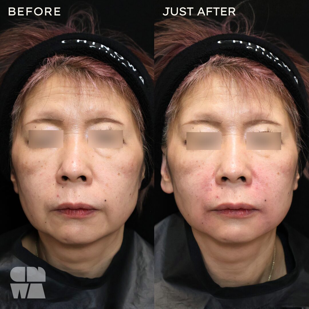 ダウンタイム施術後は内出血や赤みが出ることがありますが、1~2週間程で引いていきます。完全に落ち着くまでには通常1~2か月程かかることがあります。