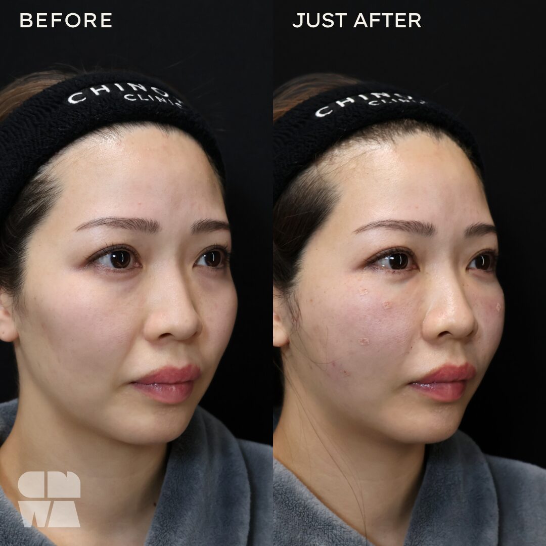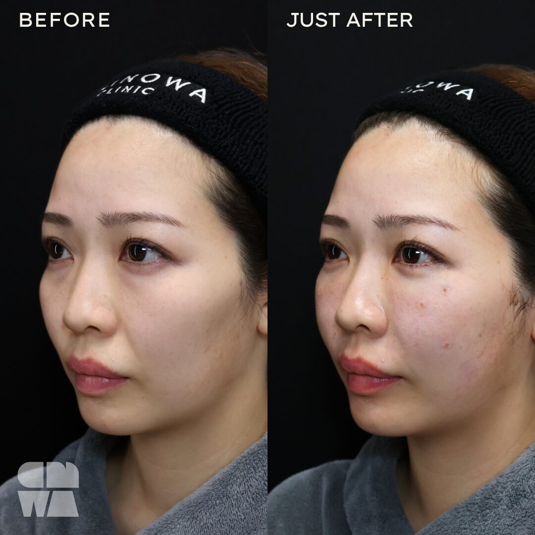 ダウンタイム施術後は内出血や赤みが出ることがありますが、1~2週間程で引いていきます。完全に落ち着くまでには通常1~2か月程かかることがあります。