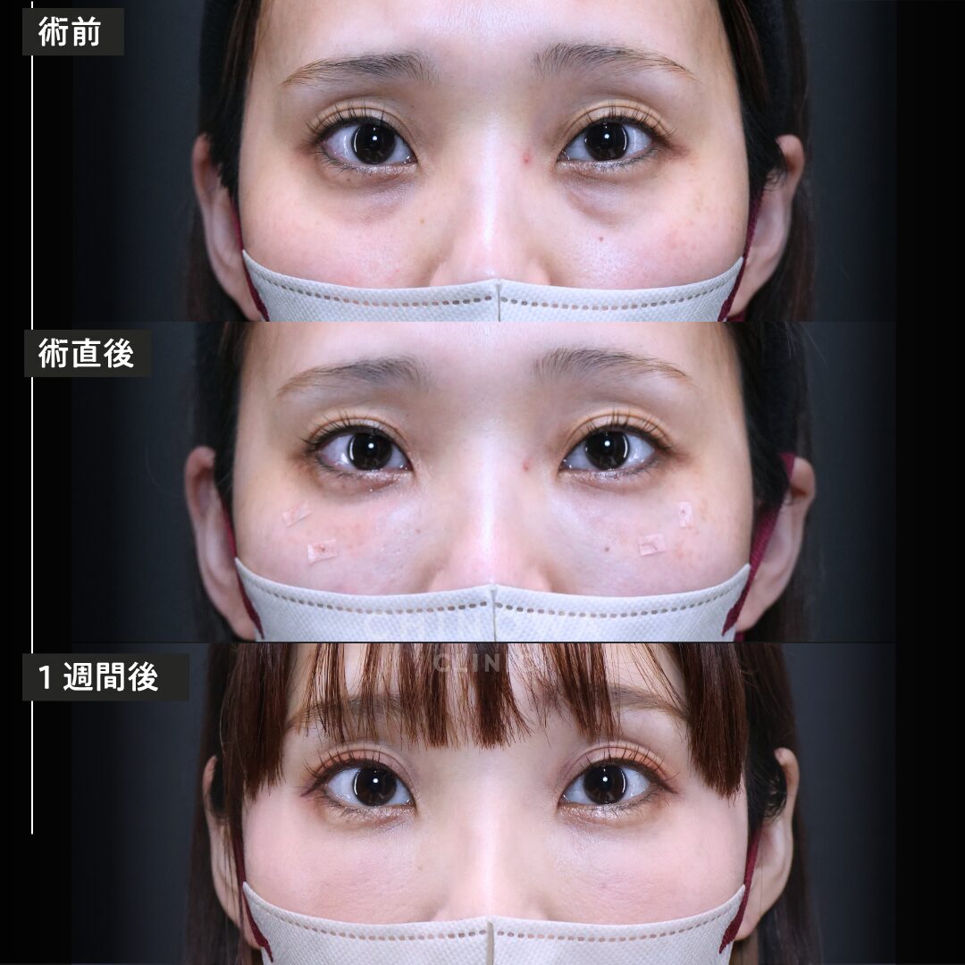 | 施術内容 | ・裏ハムラ法 ・コンデンスリッチファット注入 ・ナノファット注入(目の下~ゴルゴ) |
