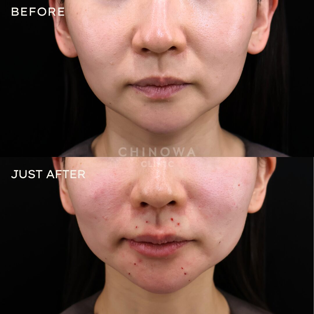 | 料金(税込) | 通常価格/ ・口角横・マリオネットライン(両側) 5本 ・法令線 (両側) 4本 6本 通常 ¥198,000 6本以上1本追加につき 通常 ¥33,000 |