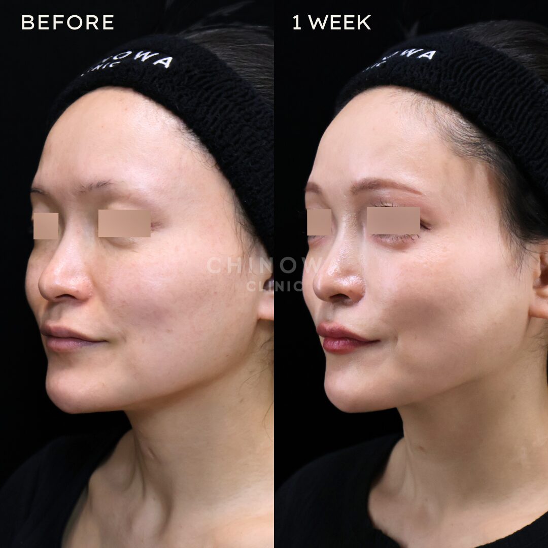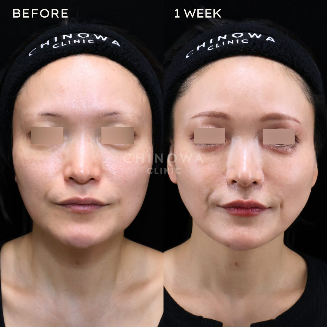 ダウンタイム腫れのピークが2、3日目、その後は7~10日かけて徐々に引いていく。内出血は2~3週間ほど出る可能性あり。