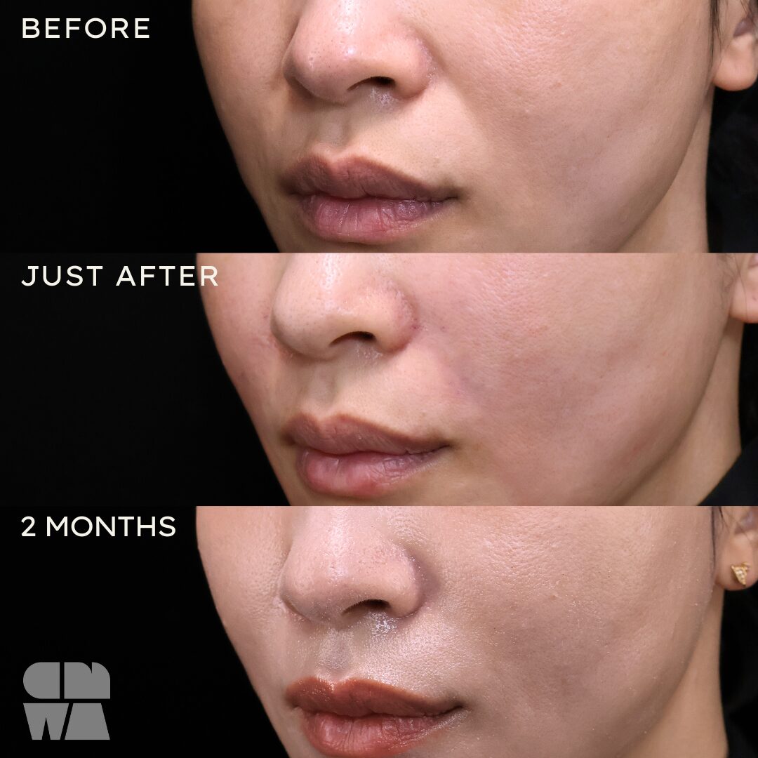 | ダウンタイム | 施術後は内出血や赤みが出ることがありますが、1~2週間程で引いていきます。完全に落ち着くまでには通常1~2か月程かかることがあります。 |