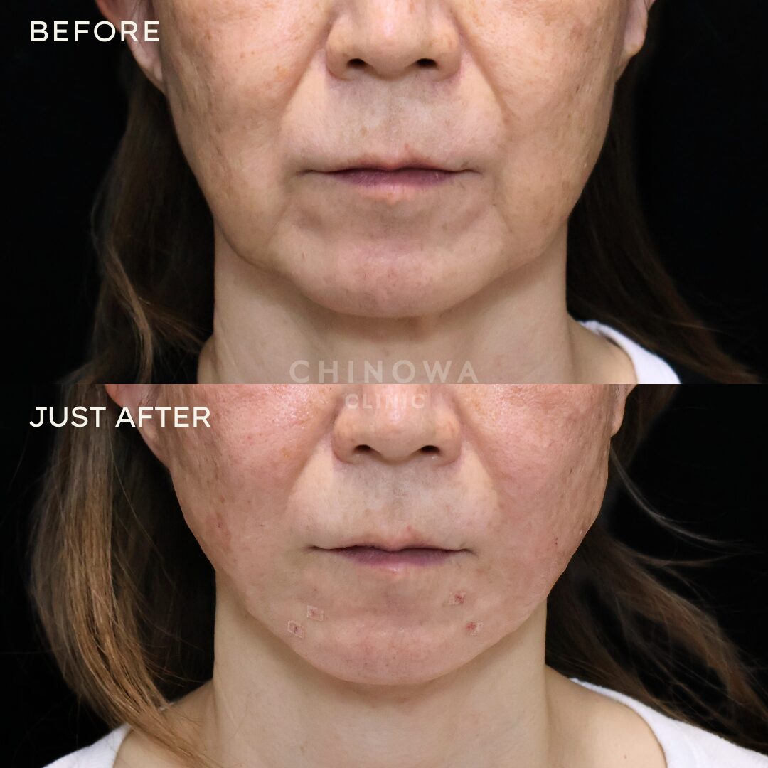 | ダウンタイム | 腫れのピークが2、3日目、その後は7~10日かけて徐々に引いていく。内出血は2~3週間ほど出る可能性あり。 |