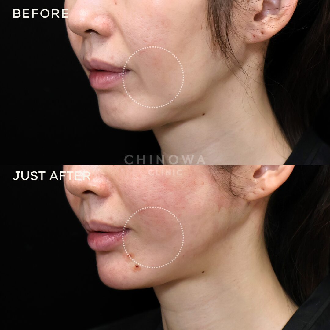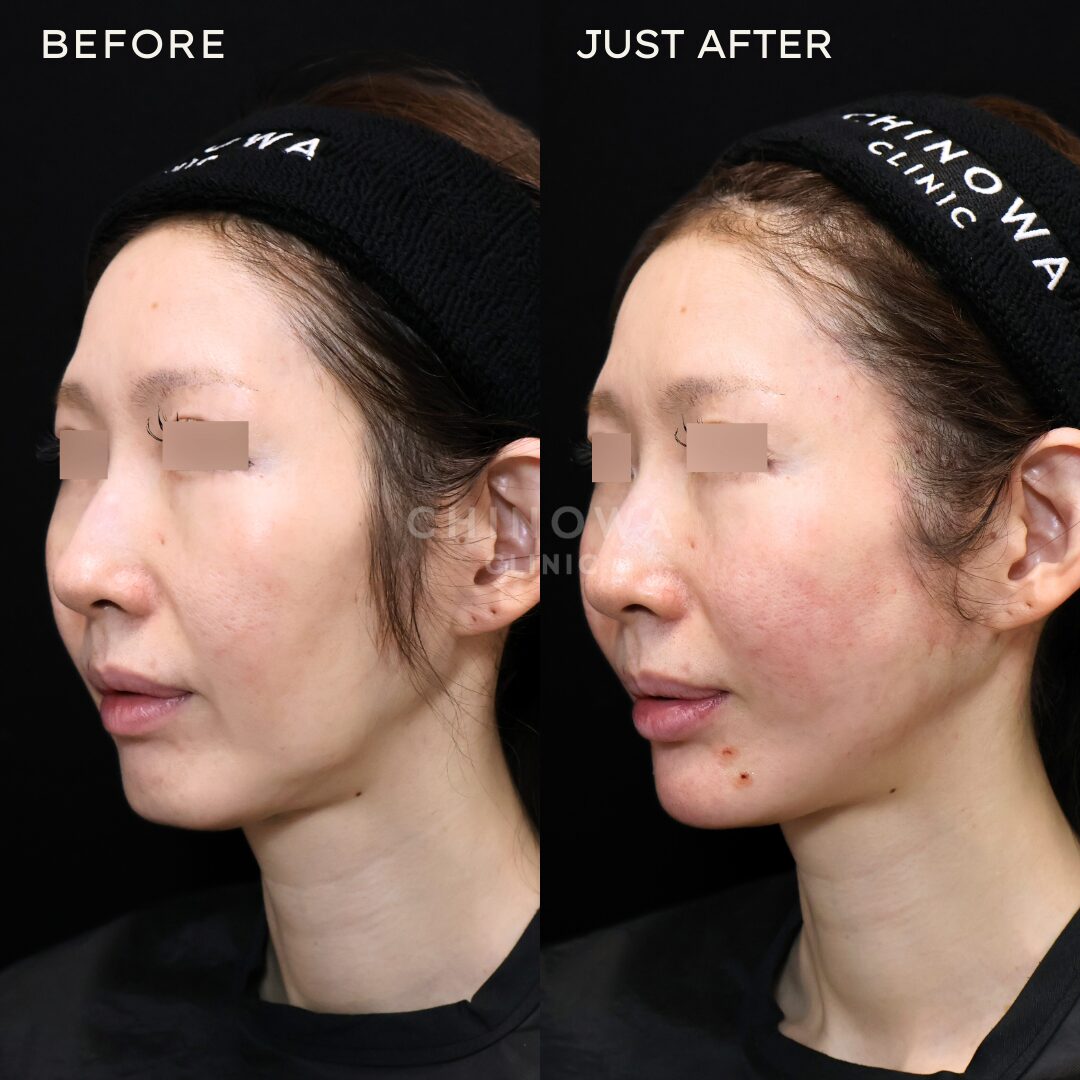 | ダウンタイム | 腫れのピークが2、3日目、その後は7~10日かけて徐々に引いていく。内出血は2~3週間ほど出る可能性あり。 |