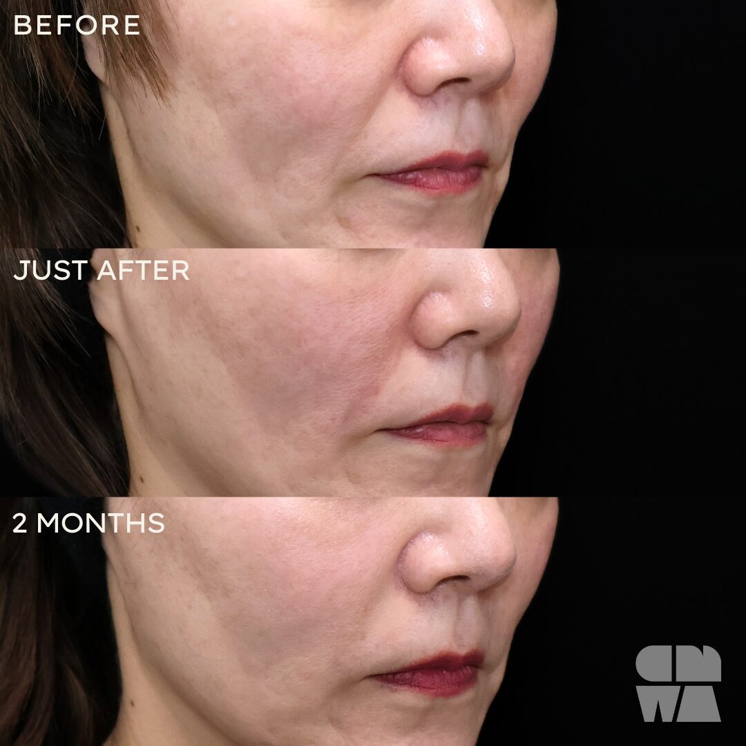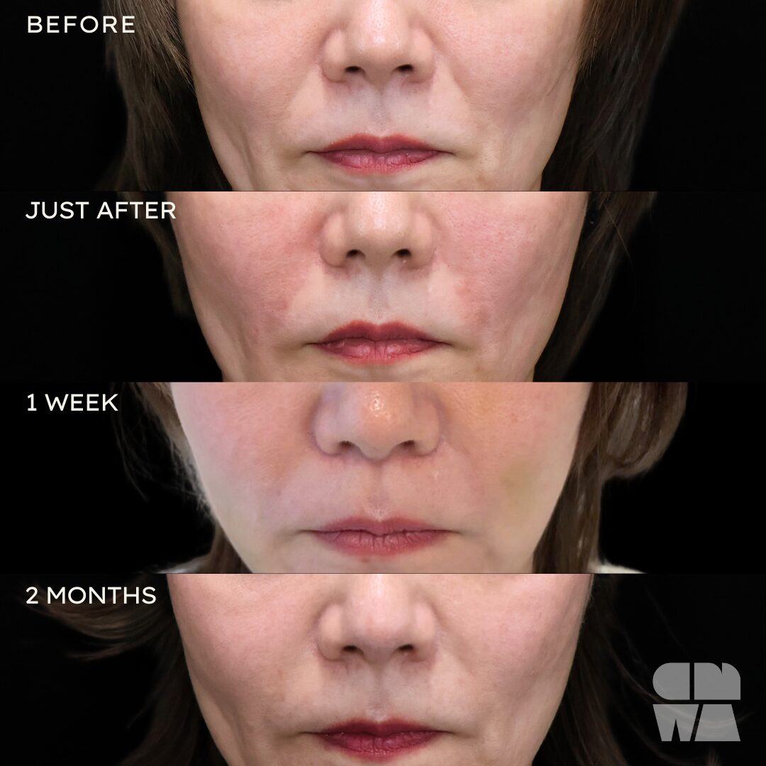 ダウンタイム施術後は内出血や赤みが出ることがありますが、1~2週間程で引いていきます。完全に落ち着くまでには通常1~2か月程かかることがあります。