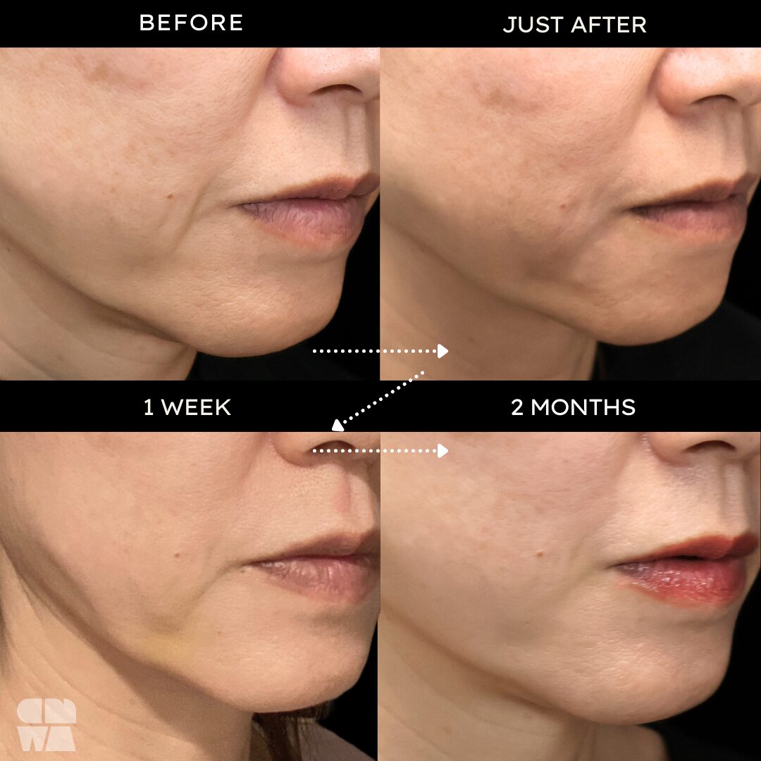 ダウンタイム施術後は内出血や赤みが出ることがありますが、1~2週間程で引いていきます。完全に落ち着くまでには通常1~2か月程かかることがあります。