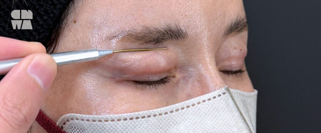 しかし、このやり方では「腫れぼったくなった」「デメキンのように見える」と感じる方が非常に多いんです。なぜかというと瞼の上は、瞼の下と違ってすごく“動く”場所なんです。