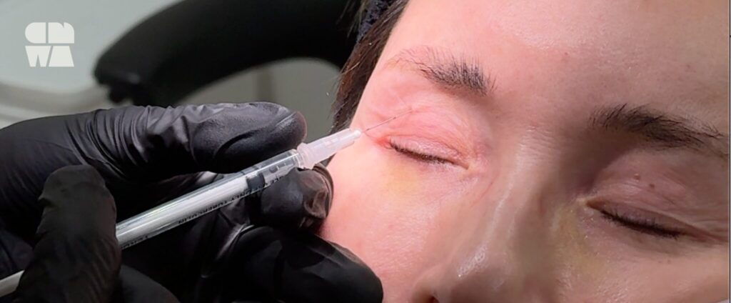 眼窩脂肪内への注入は、凹凸が出にくく内出血が軽度で済むケースが多く、施術後の腫れも最小限。