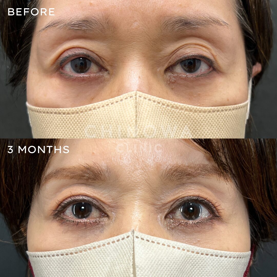 | 術後の経過 | 手術後も、たるみによって二重幅が狭くなるなど、加齢による変化は引き続き起こります。 抜糸までの1週間は、切開したところに糸があります。 ※手術後、目元の施術(レーザー等)のご予定があるお客様は看護師までお伝えください。