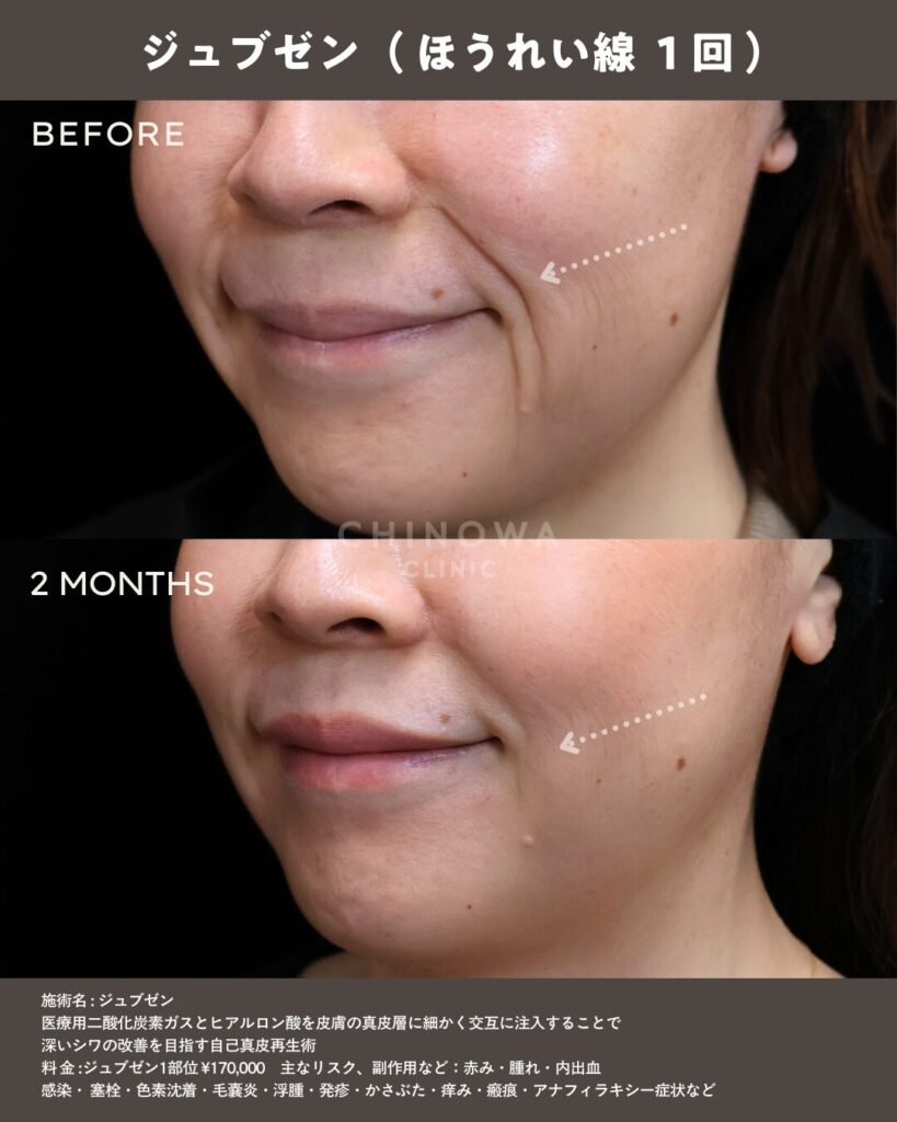 僕自身、法令線治療を長年行ってきましたが、ジュブゼンのように持続力と自然さを両立できる治療はなかなかありません。