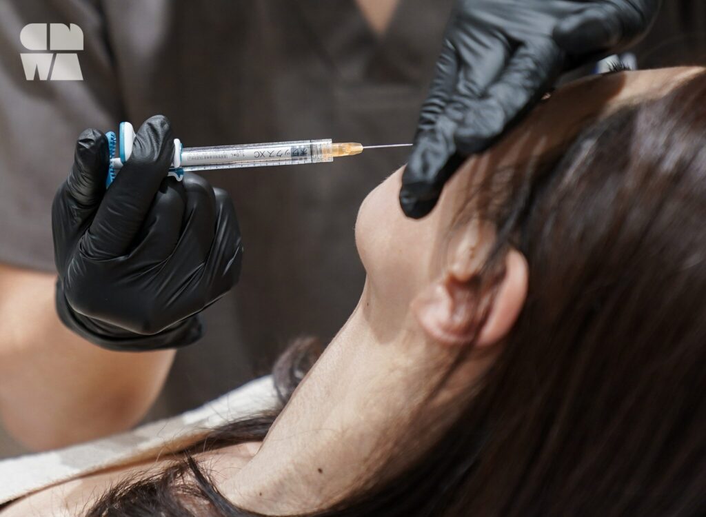 - 必要に応じて麻酔を行ったら、事前にデザインした部位へ丁寧に注入していきます。痛みに配慮しながら施術を進め、バランスを確認しつつ微調整を行います。施術時間は部位や範囲により異なりますが、短時間で完了します。
