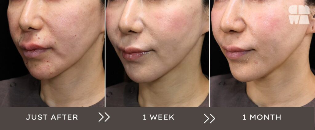 腫れやむくみが落ち着くにつれて、もたつきがなだらかに整い、自然なリフトアップ効果が徐々に明確になります。