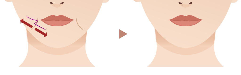 写真:口角横・マリオネットラインに挿入、口横の段差がなめらかに