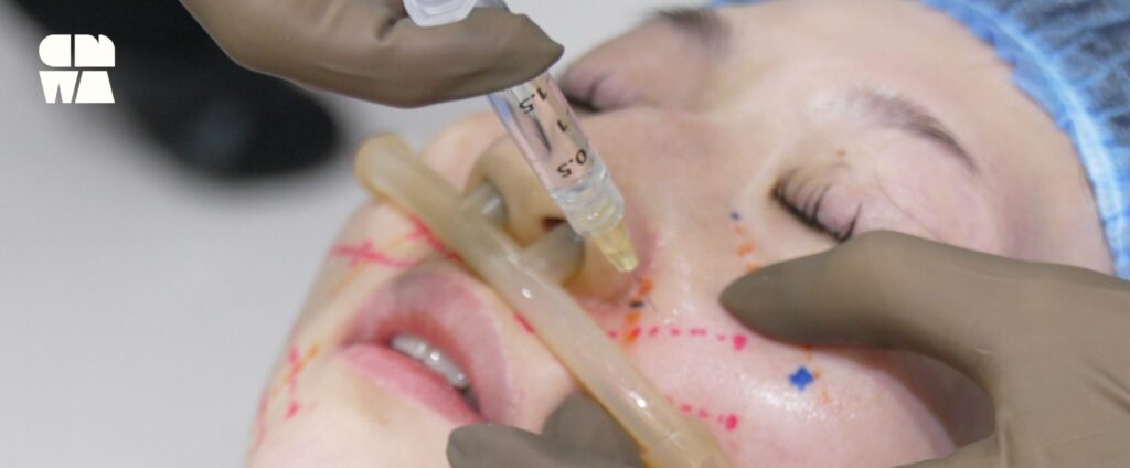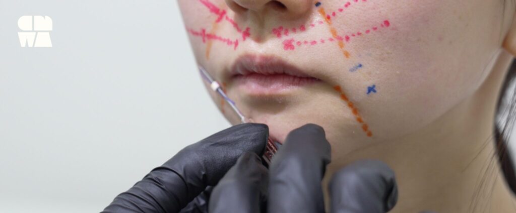 ぽにょりん(エクステンダーマスター)は、韓国のAphrodite(アフロディーテ)社が開発したスレッドリフトです。口周りやフェイスラインのもたつき・段差・たるみを切らずに自然に整えるための治療です。