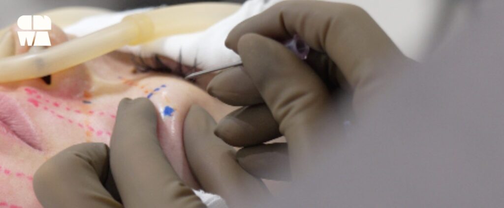 - ブロック麻酔を行い、デザインに沿って、糸の挿入を行います。