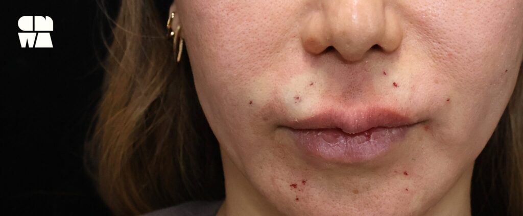 口元は皮膚が薄く、強い引き上げによる違和感が出やすい部位です。